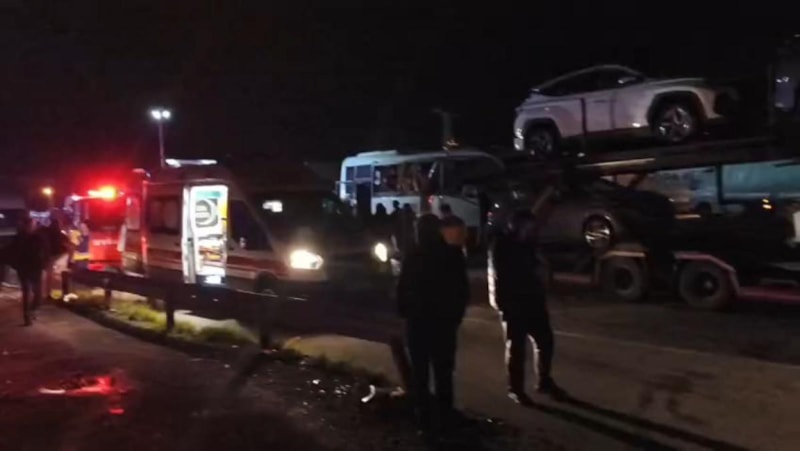 Amasya-Samsun kara yolu Merzifon Kayadüzü mevkiinde bir otomobil, yeni araç taşıyan bir tır ve içinde mahkumların olduğu midibüs çarpıştı.