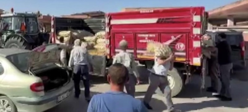 Genç çiftçi, tarlasında hasat ettiği 8 ton patatesi halka ücretsiz dağıttı.
