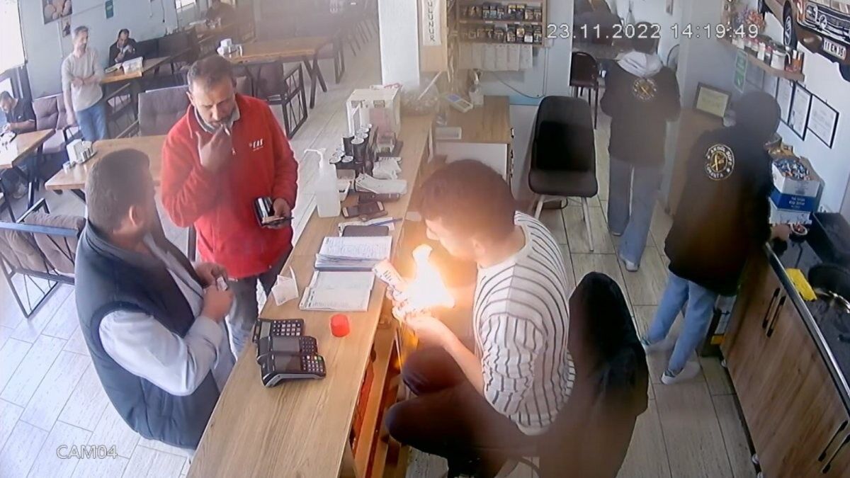 DHA'nın haberine göre, oanlar iş yerinin güvenlik kamerasına yansıdı.
