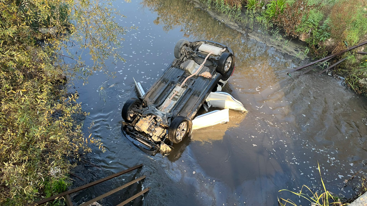 Görüntülerde, aracın yolda ilerlerken bir anda kontrolden çıkarak dereye devrildiği ve çevredeki vatandaşların hemen yardıma koştuğu görülüyor.