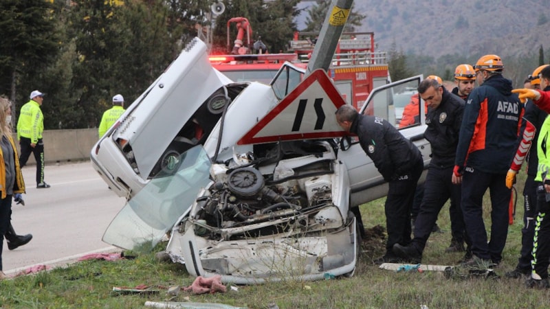 Direğin kökünden söküldüğü kazada parçalanan otomobildeki Şahiner, olay yerinde hayatını kaybetti.