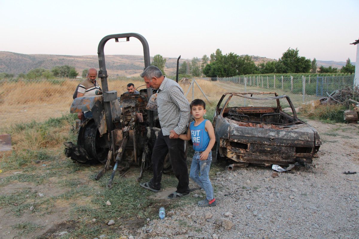 7 yaşındaki torunuyla namaz kılmaya gittiği camideyken acı haberi alan Yaşar Aktaş, geldiğinde alevler içindeki evi, traktörü ve otomobiliyle karşılaştı.