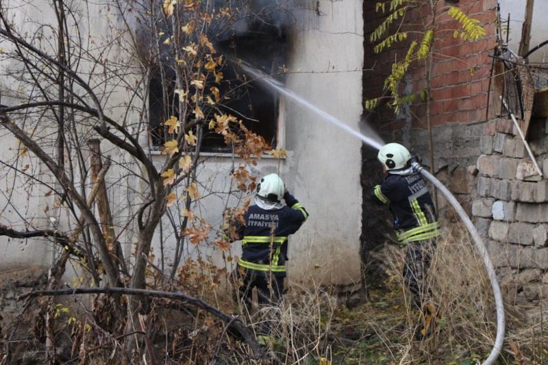 Amasya'nın Şeyhcui Mahallesi’nde Kayış ailesine ait iki katlı sobalı evde henüz belirlenemeyen bir nedenle yangın çıktı. İhbar üzerine itfaiye, polis ve sağlık ekipleri bölgeye sevk edildi.