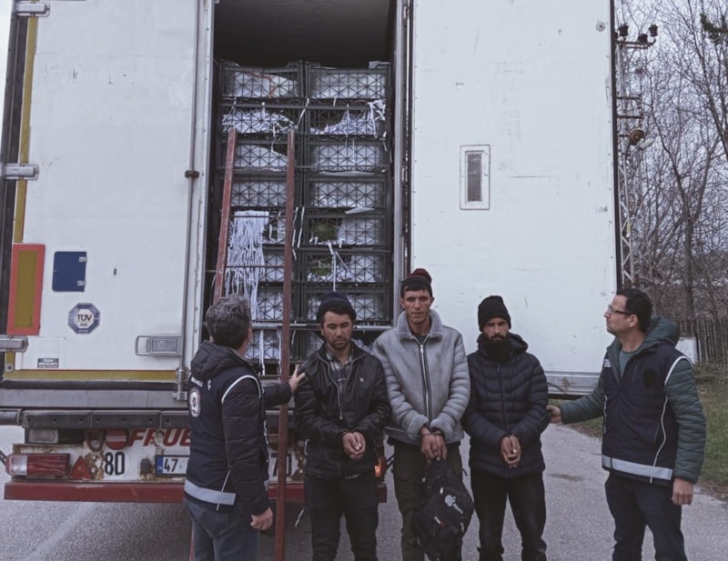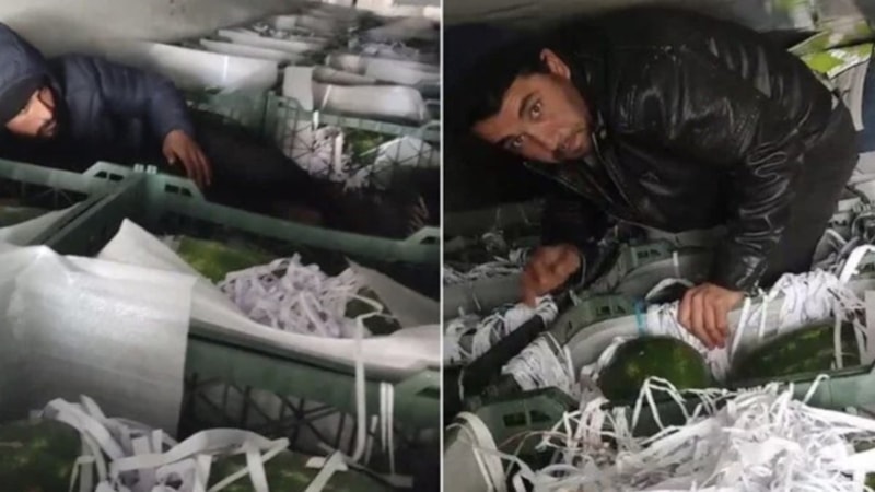 Kontrolde, tırın dorsesindeki karpuzların arasından yaşları 18 ile 30 arasında değişen 3 Afganistan uyruklu kaçak göçmen yakalandı.
