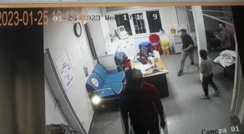 Öte yandan hastanede yaşanan gerginlik anları ise güvenlik kamerasına saniye saniye yansıdı.