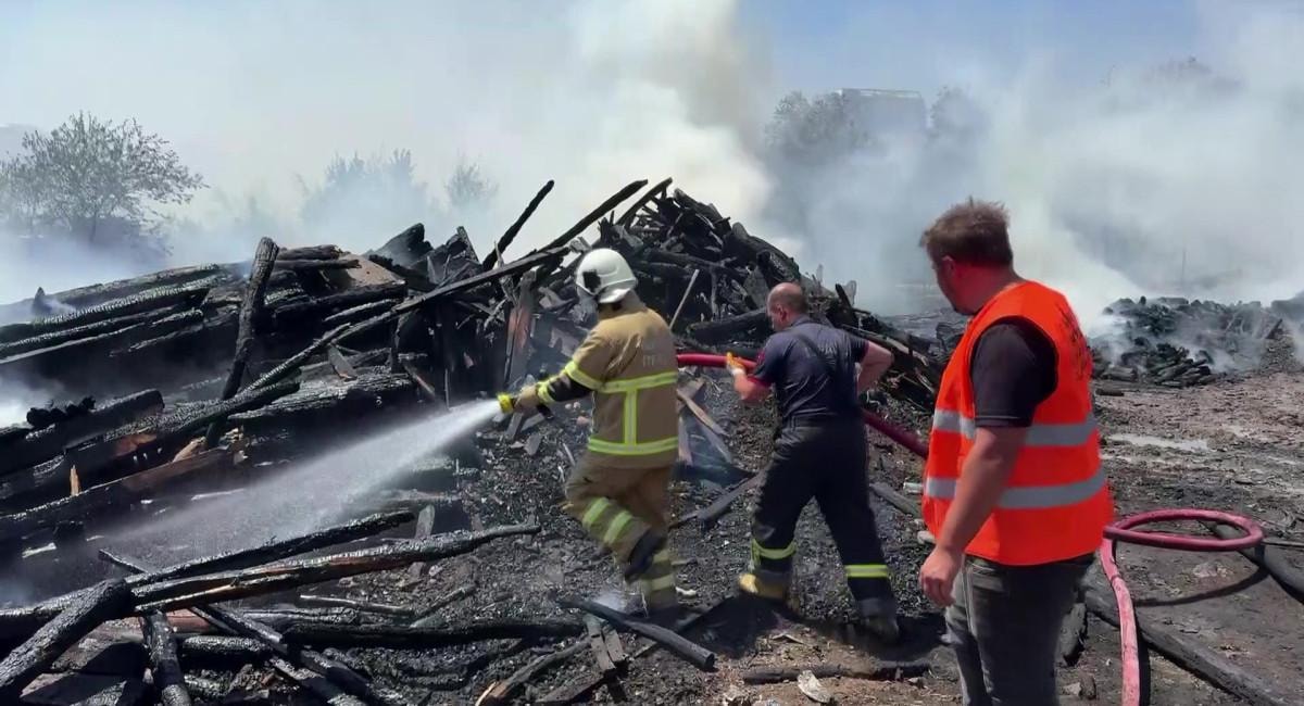 Amasya'nın Merzifon ilçesindeki Akif Gülle Bulvarı civarında bulunan bir kereste deposunda, henüz belirlenemeyen nedenle yangın çıktı.