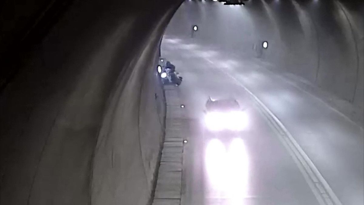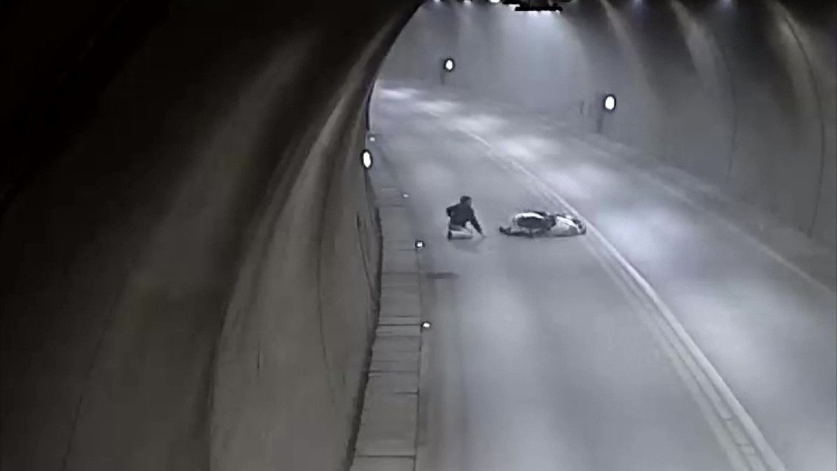 Motosikletle yola savrulan sürücünün yardımına tünelden geçen diğer araç sürücüleri yetişti.