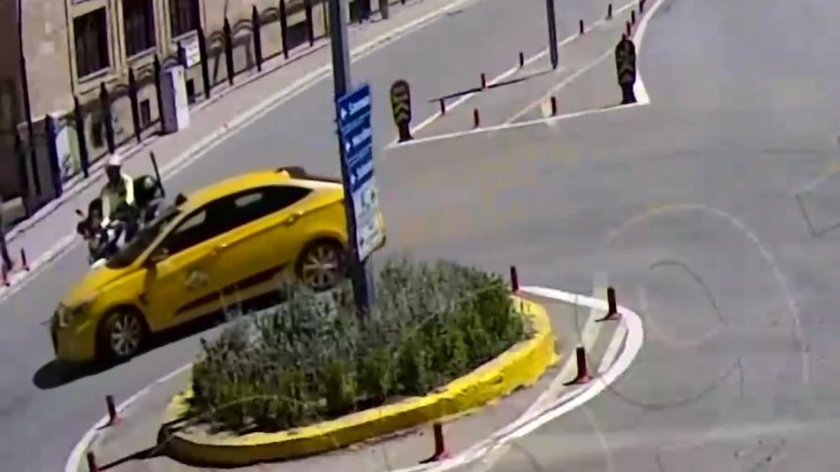 Görüntülerde, motosikletin ticari taksiyle çarpıştığı ve çevredeki ekiplerin hızla müdahale ettiği anlar net şekilde görüldü.