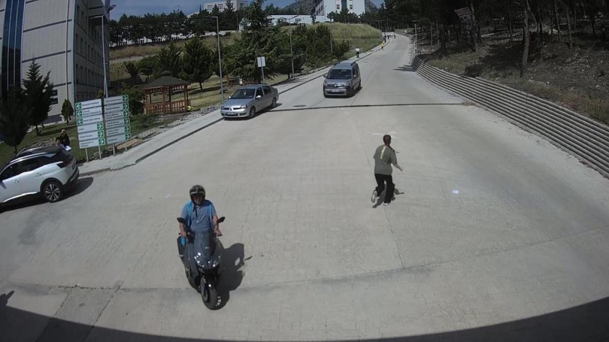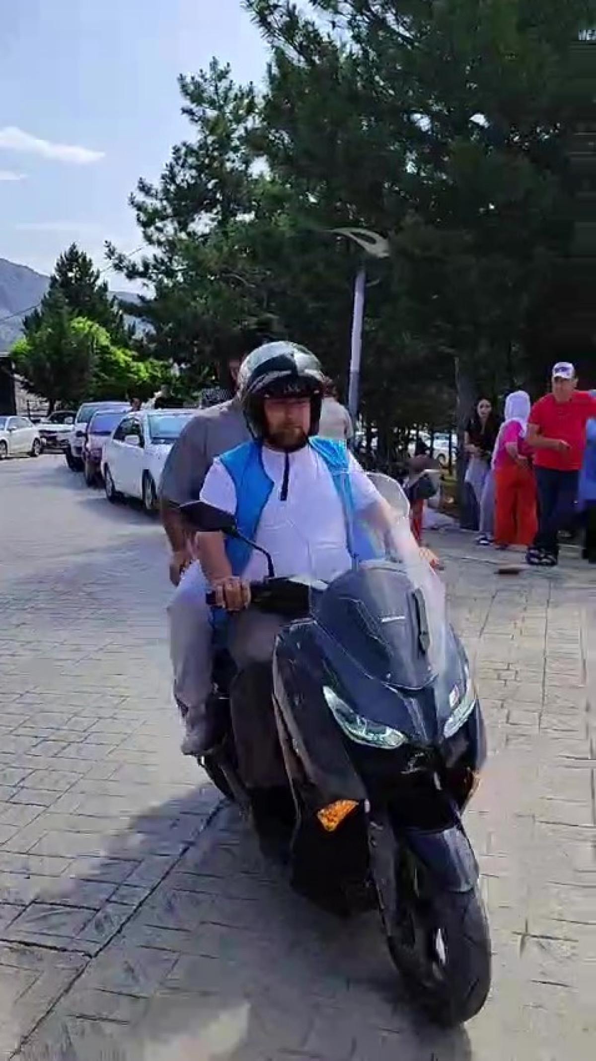 Amasya Üniversitesi Yeşilırmak Yerleşkesi içinde bulunan İlahiyat Fakültesi Camii'nde görev yapan müezzin Nazmi Pala, sınava az bir zaman kala geciken gençleri görünce motosikletine binip yardımlarına yetişti.