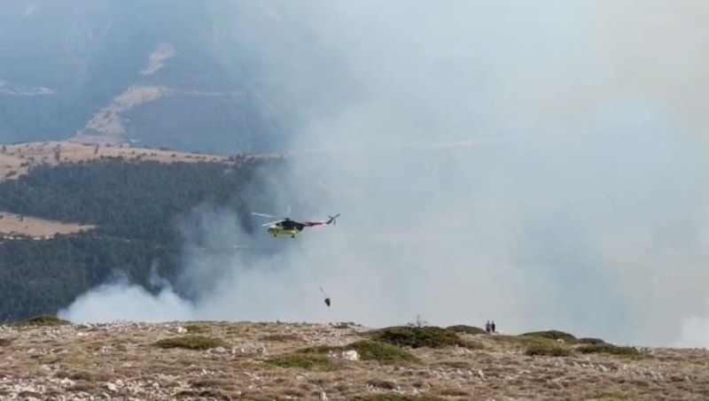 Yangına 1 helikopter, 12 arazöz ve 190 personelle müdahale edilirken, havanın kararmasıyla birlikte helikopterin müdahalesi sona erdi.