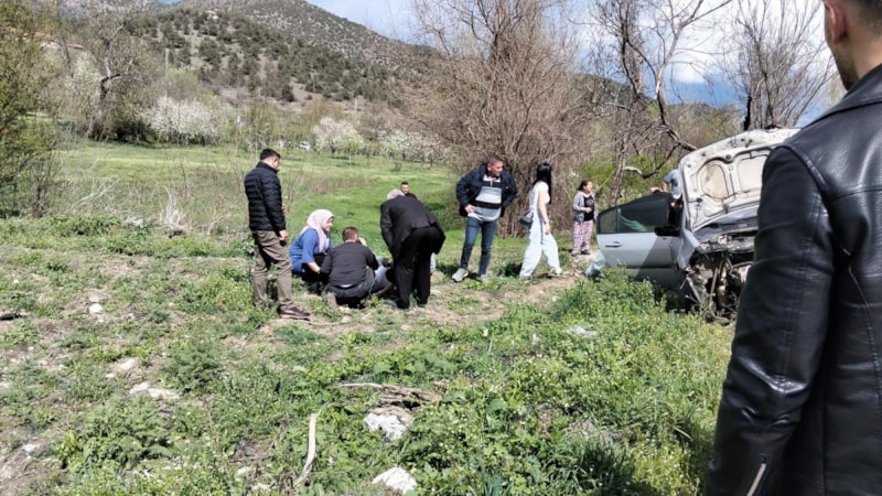 Yol kenarına savrulan otomobildeki sürücü ve yanındaki kızı Zeynep Nur V. yaralandı.
