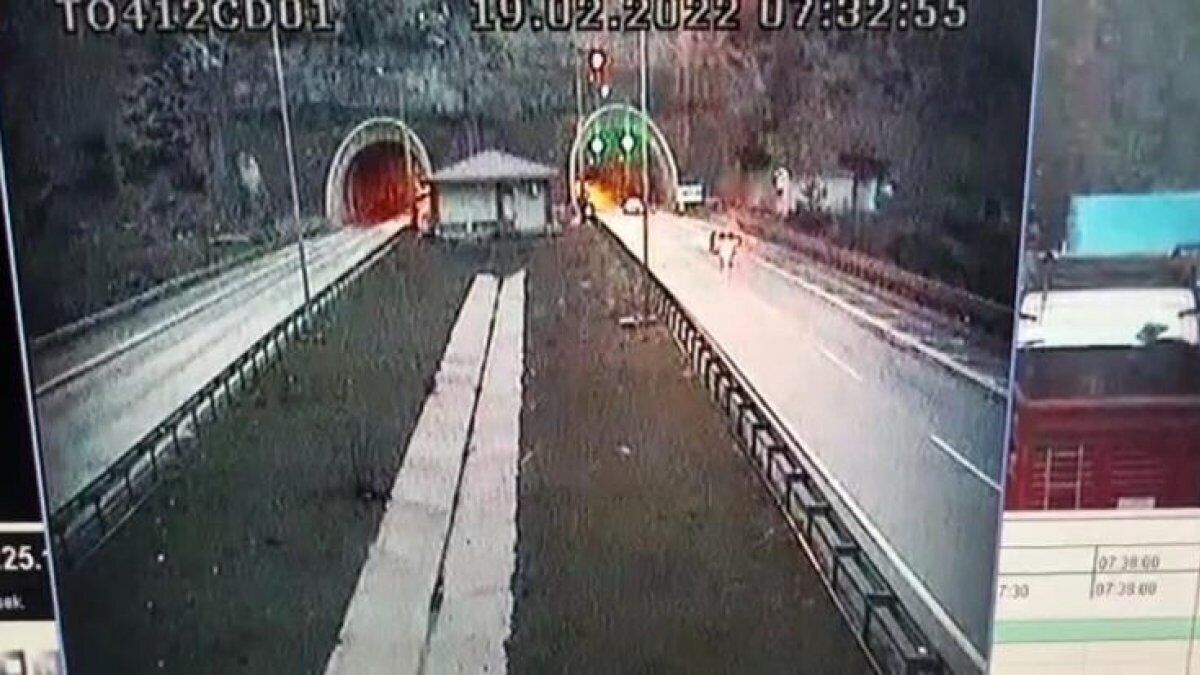 Bu arada kaza, tünelin güvenlik kameralarına yansıdı.