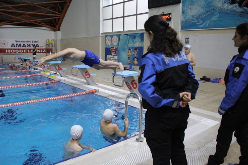 Çocukların sosyal gelişimlerinin desteklenmesi ve sportif faaliyetlere yönlendirilip topluma kazandırılmaları amacıyla Amasya Emniyet Müdürlüğü'nün uyguladığı "Geleceğimizi İnşa Ediyoruz" projesi kapsamında yüzme kursu düzenlendi.