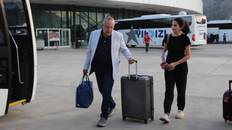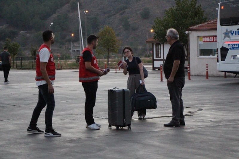 Rektör Prof. Dr. Ahmet Hakkı Turabi, öğrencilerini otogarda personeliyle birlikte karşılayarak, valizleri taşımalarına da yardım etti.
