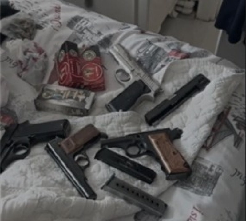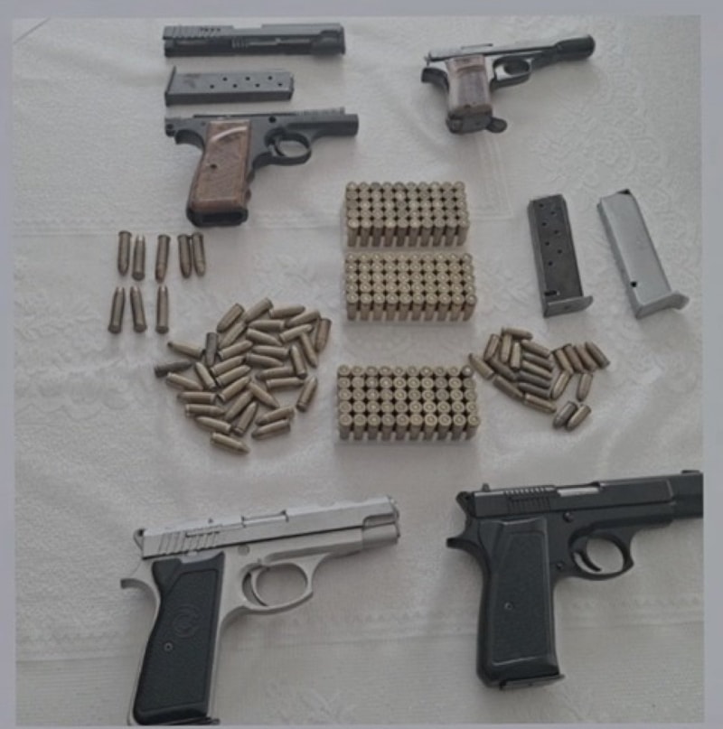 Yapılan aramalarda; 4 ruhsatsız tabanca, 1 ruhsatsız av tüfeği, 500 adet 9x19 mm çapında fişek, 96 adet 7.65 mm çapında fişek, 8 adet 38 kalibre fişek ile çok sayıda silah parçası (şarjör, kapak takımı, iğne, kabze vb.) ele geçirildi.
