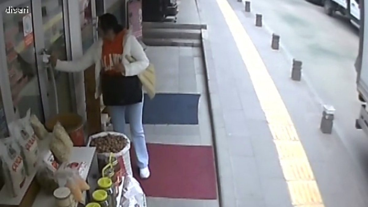 Dükkanın önünde gördüğü süpürgeyi almak isteyen Nesrin Durak, Kantarcı'yı bulamayınca süpürgeyi alıp, iş yerinin kapısına not bıraktı.