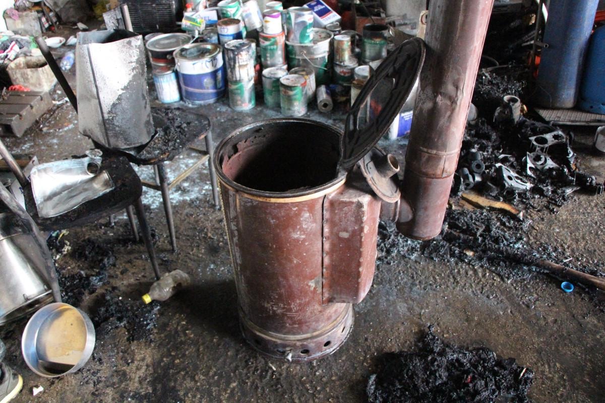 Amasya'nın Göynücek ilçesinde römork imalatı yapan bir atölyede çalışan stajyer öğrenciler, ısınmak için yaktıkları sobada ateşi alıştırmak için tiner kullandı.