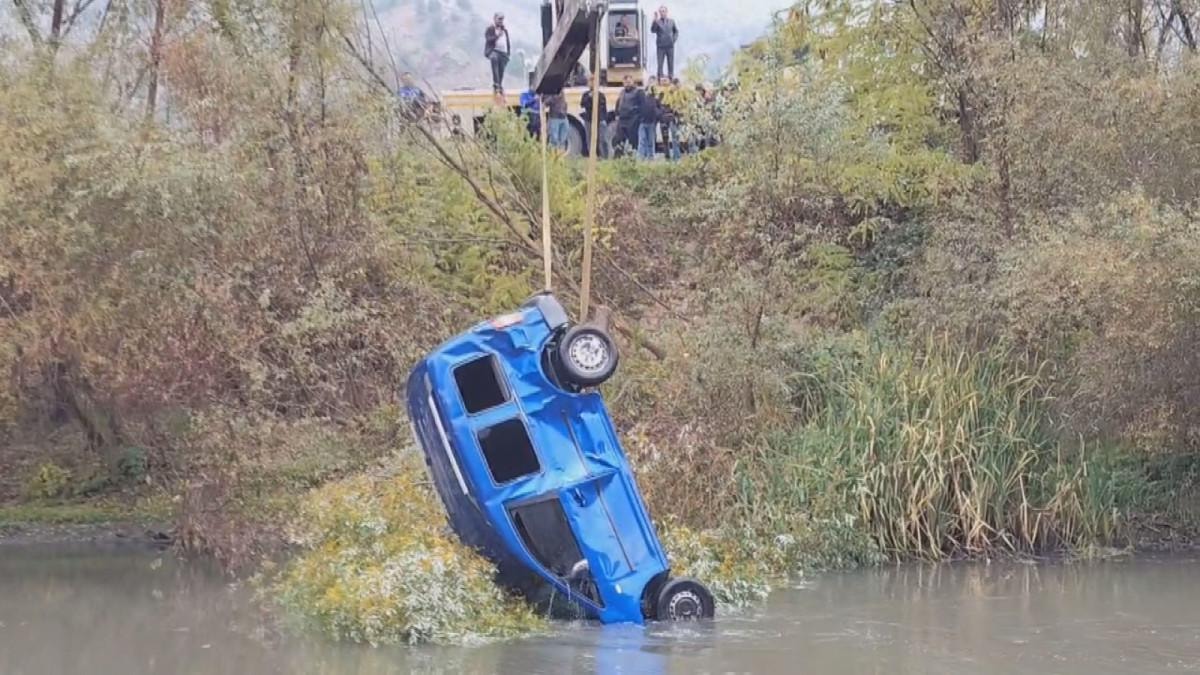 Yüksel aracıyla uçtuğu ırmaktan yüzerek çıkarken, hafif ticari araç Amasya Belediyesi Su Altı Arama Kurtarma ekipleri tarafından vinçle kurtarıldı.