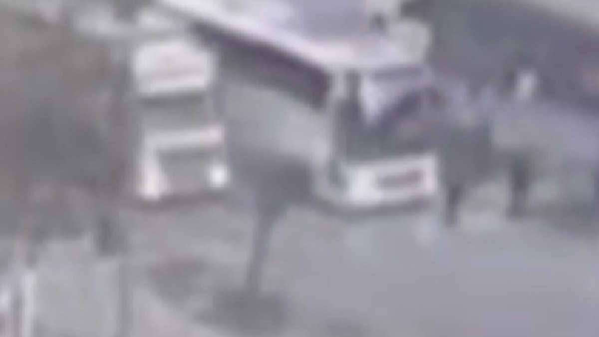 Yolcu otobüsünün yayaya çarptığı anlar güvenlik kamerasınca kaydedildi.