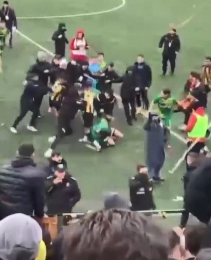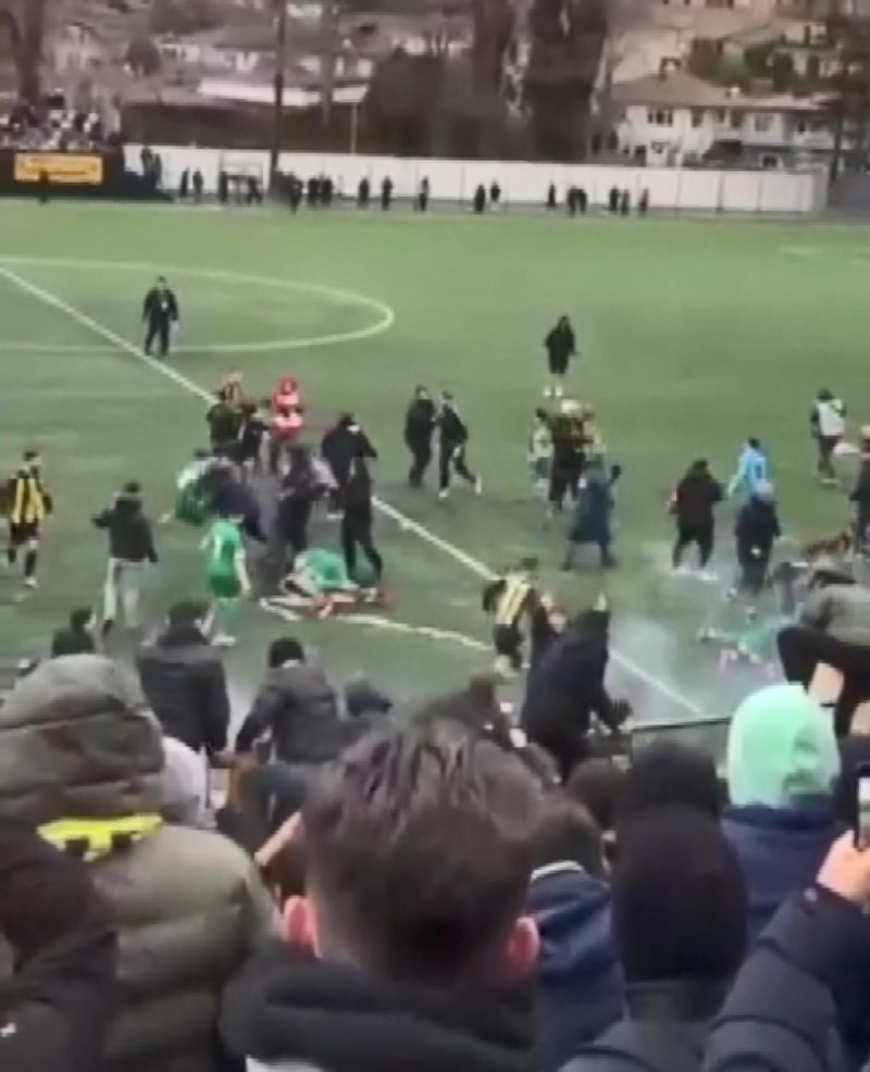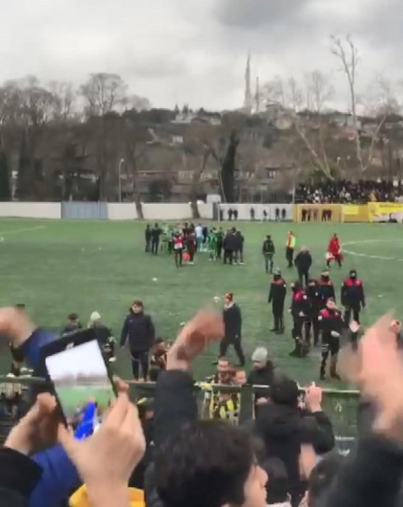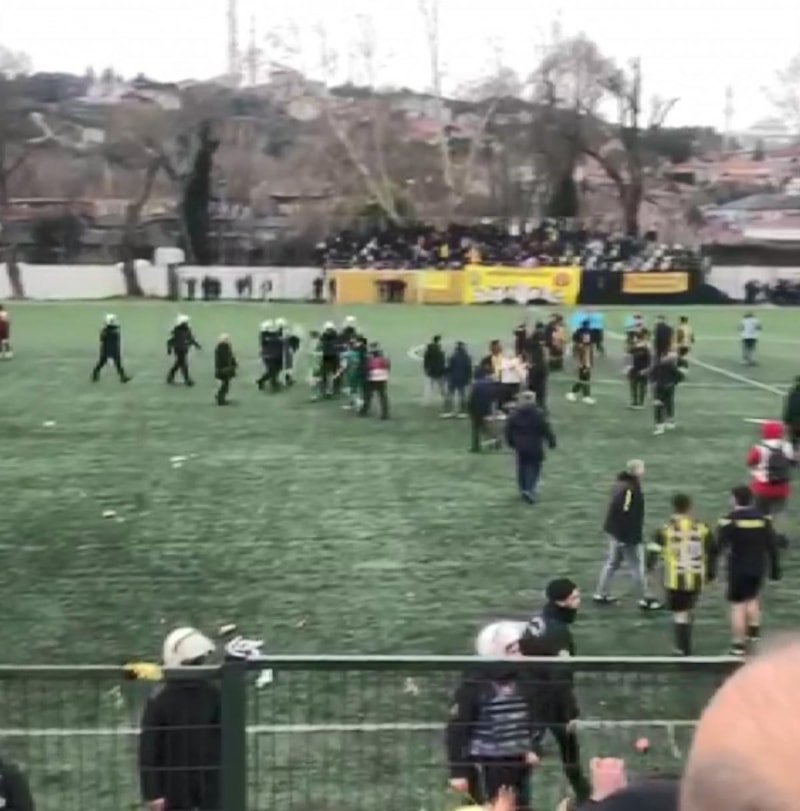Kavgaya, tribünde takımlarına destek olan Beykozlu taraftarlar da sahaya inerek dahil oldu.