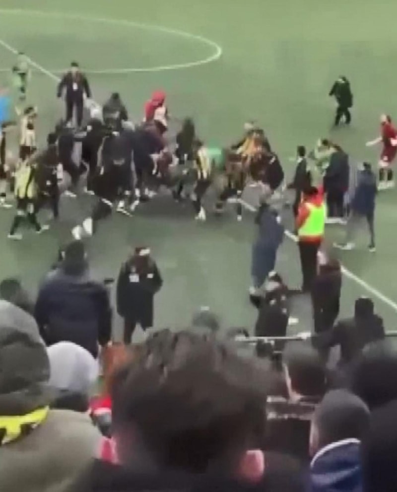 Sahada görevli polislerin müdahalesiyle kavga son bulurken, çok sayıda oyuncu yaralandı.