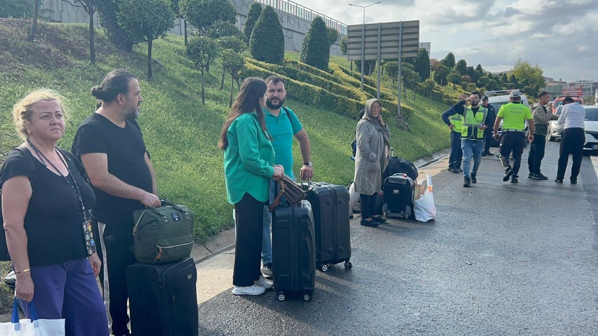 Otobüste bulunan yolcular ise valizleriyle yol kenarında başka bir otobüse binmek için bekledi.