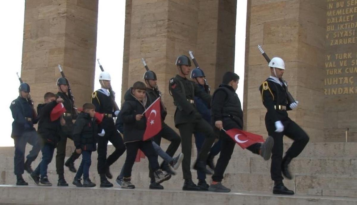 Hamza Çatma ise, “Polisler gibi yürüyüş taklidi yaptık. Sonra da videomuzu yaptılar. Onlar gibi yere vurarak yürüdük. Anıtkabir’e geldiğim için çok mutluyum ve polis olmak istiyorum.” dedi.