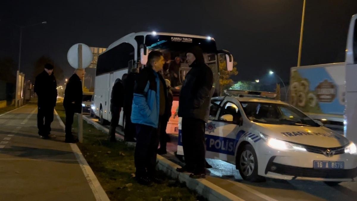 Sürücü Alper I. yönetimindeki 16 ASY 658 plakalı tur otobüsü, İnegöl Emniyet Müdürlüğü ekiplerinin dikkati üzerine ilçe girişinde durduruldu.