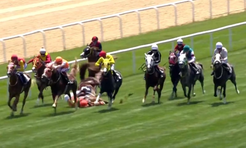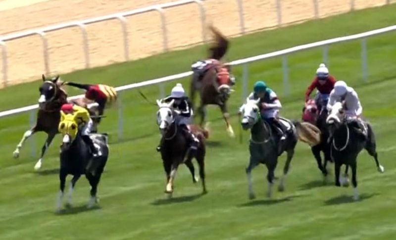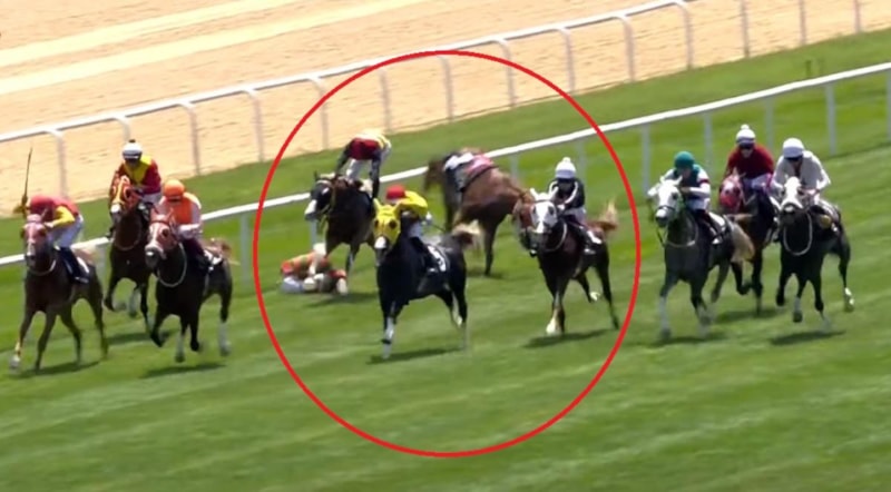 75. Yıl Hipodromu'nda günün ilk koşusu olan 'Maiden' yarışında apranti Fatih Sultan Mehmet Sansar ile Jokey Mehmet Keskin, mücadele içerisinde attan düştü.