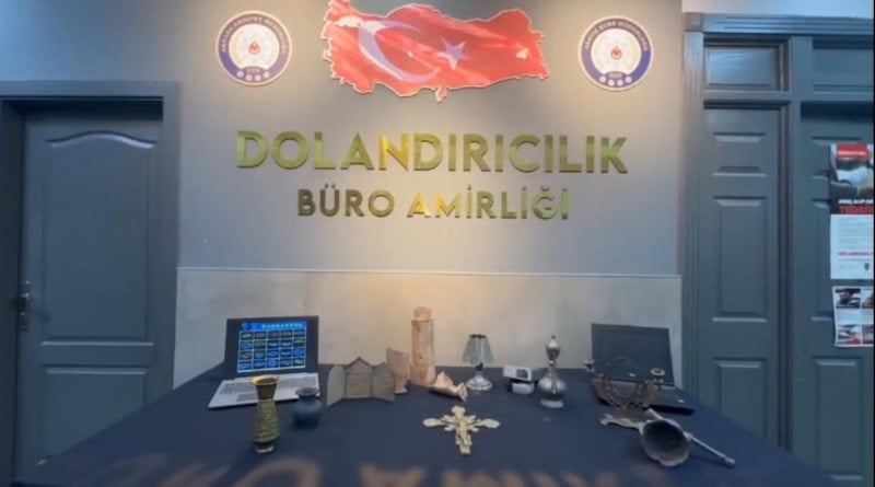 Evlerinde ve araçlarında yapılan aramada, tarihi eser süsü verilen haç, küp, ayna gibi materyaller ele geçirildi.