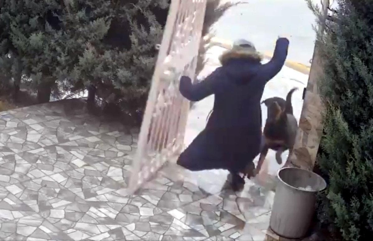 Çığlık sesleri üzerine durumun farkına varan komşu ise bahçesinin kapsını açarak kadının içeri girmesini sağladı ve köpekleri uzaklaştırdı.