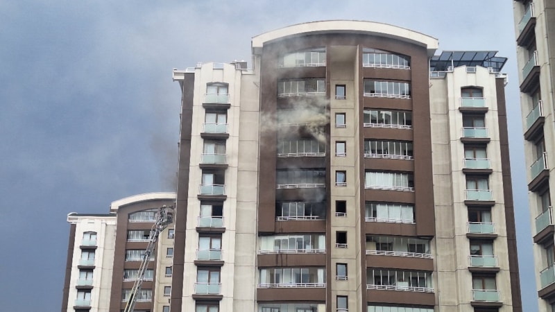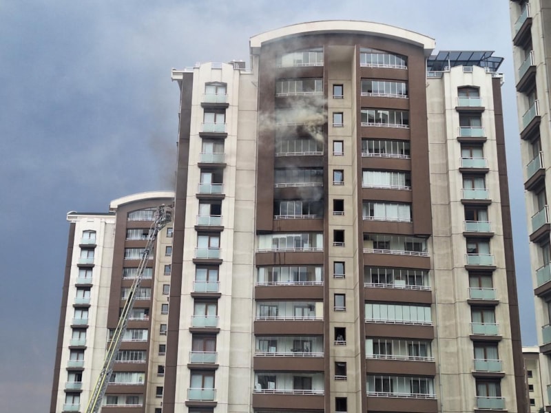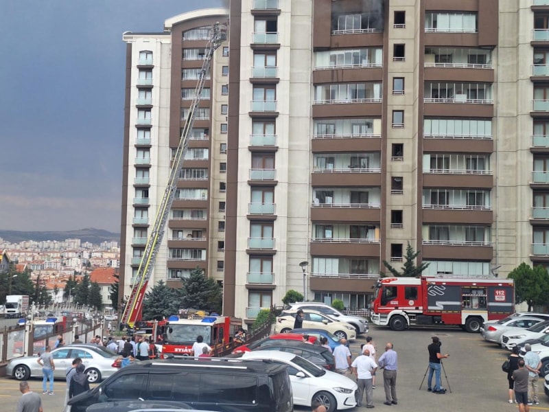 Keçiören ilçesinde 14 katlı binanın 9'uncu katındaki evde çıkan yangın itfaiye ekipleri tarafından söndürülürken yangın sırasında balkonda mahsur kalan anne ve oğluna da sağ salim ulaşıldı.