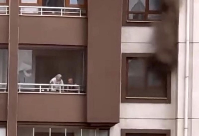 Balkonda büyük panik yaşayan anne ve oğlu, itfaiyenin merdivenli aracıyla kurtarıldı.