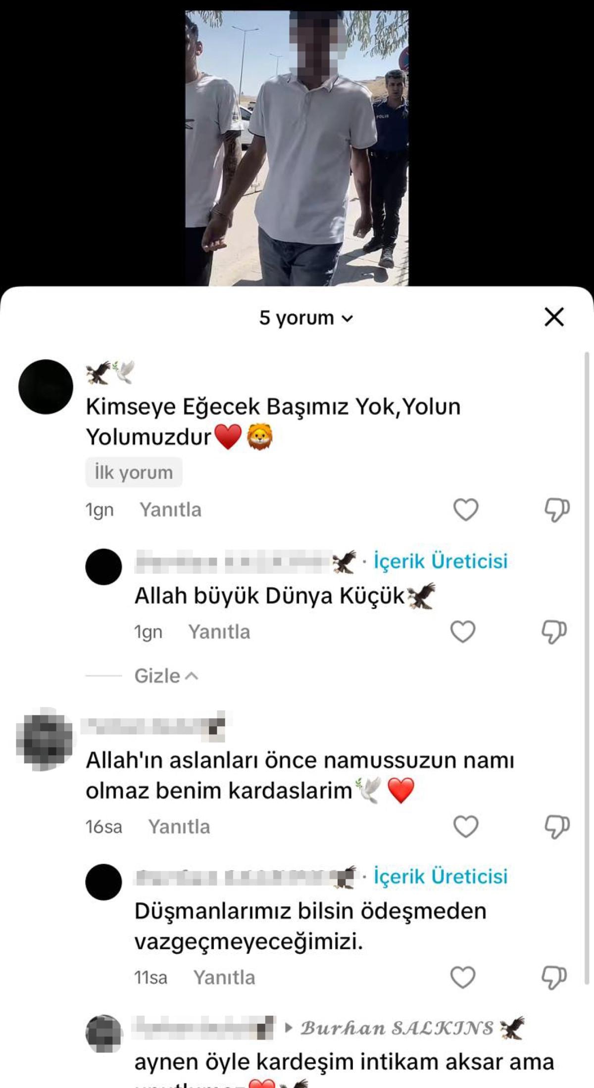 Serbest bırakılan şüphelilerden B.S.’nin sosyal medya paylaşımları dikkat çekti. B.S., gözaltına alınırken çekilen fotoğrafını "Barış istiyorsanız kafanıza sıkın. Düşmanlarımız bilsin, ödeşmeden vazgeçmeyeceğiz" notuyla paylaştı. Ayrıca tutuklanan arkadaşlarının polis aracında gülerek verdikleri pozları da hesabına ekledi.