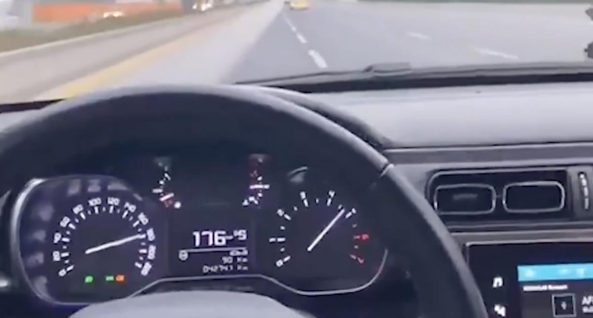 İşlek cadde üzerinde otomobilin ibresinde 176 kilometreyi gören sürücü, trafik kurallarını hiçe saydı.
