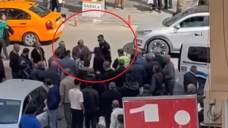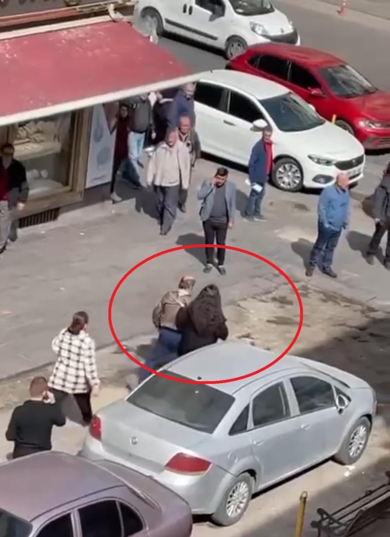 E.G.'nin, M.E.'yi polis noktasına götürmesi ve çevrede toplananların tepkileri, cep telefonu kamerasına yansıdı.