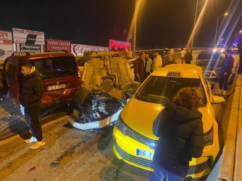 Ankara'nın Yenimahalle ilçesi Şaşmaz Bulvarı üzerinde seyir halinde olan araçlar trafik çevirmesinde bekleyen araçlara çarptı.