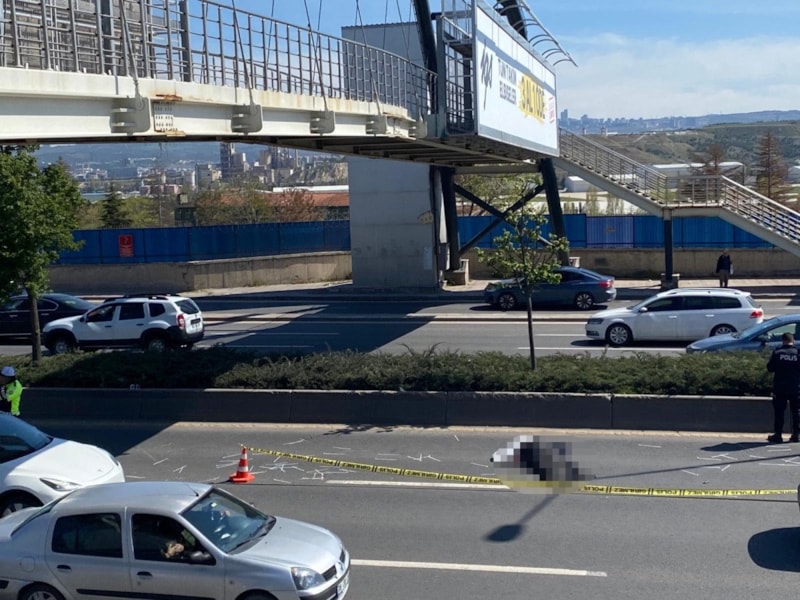 Görüntülerde; Vedat Gürbüz'ün üst geçitten trafiğin yoğun olduğu yola düştüğü görüldü.