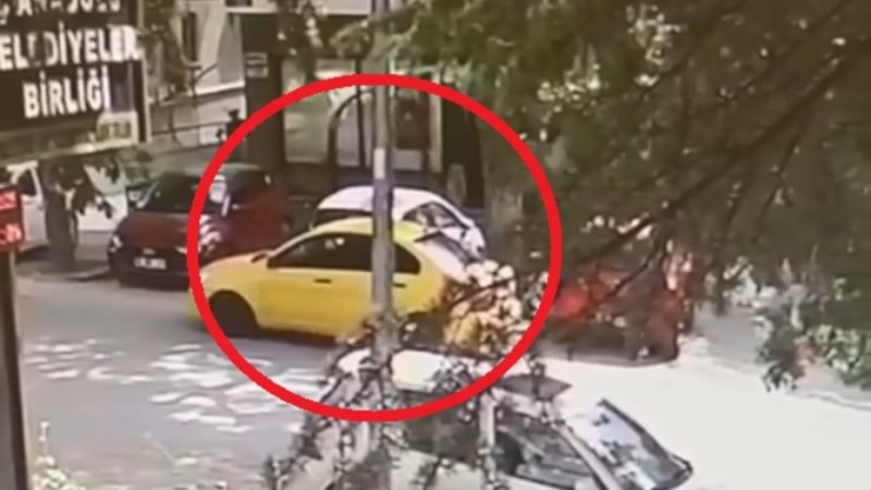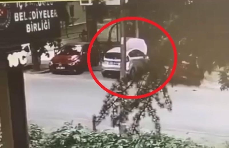 Yakındaki bir derneğe ait güvenlik kamerasına yansıyan görüntüde, tamirci olarak tanıtan kişinin otomobilinin yanına yaklaşıp, çamurluk kısmına eğilerek bir parça söktüğünü fark etti.