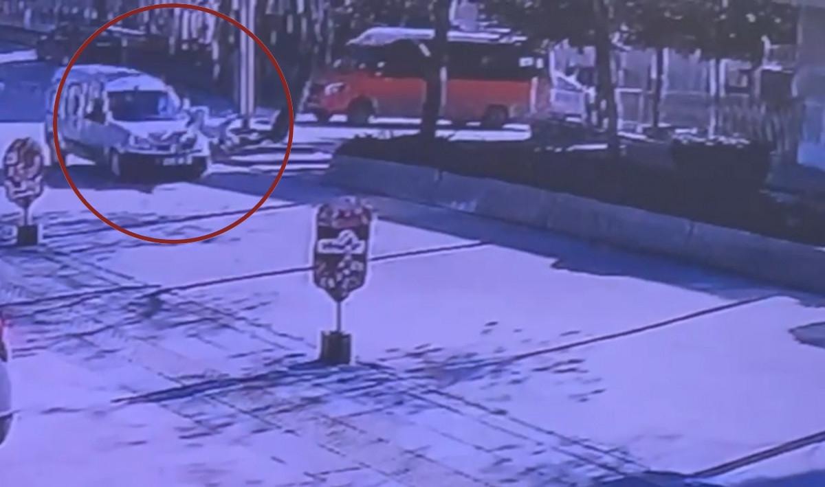 Görüntüde Gülhan K.'nin aniden koşarak yolun karşısına geçmeye çalışırken hafif ticari aracın çarpması ile refüje doğru savrulduğu görülüyor.
