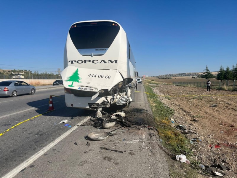 Bu sırada otoyolda seyreden kamyonet, duramayarak otobüse arkadan çarptı.