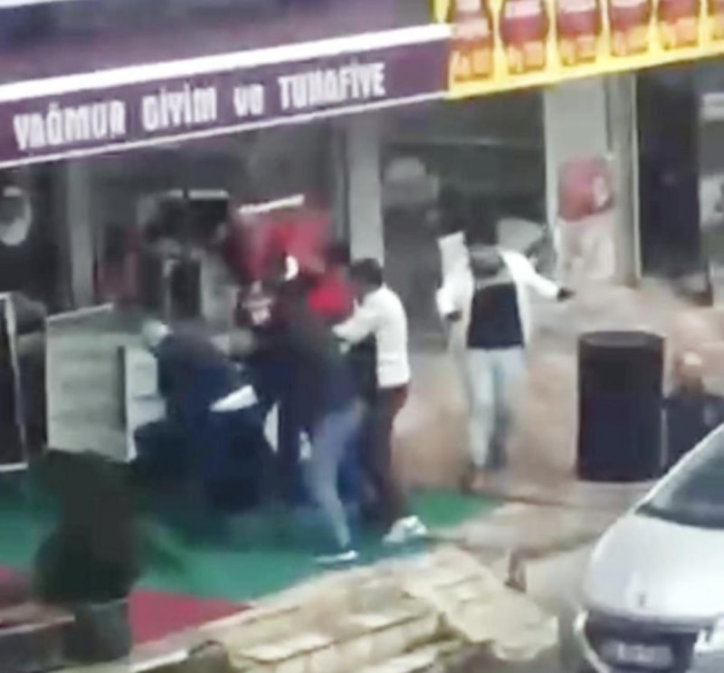 Barınak çalışanları ile iş yeri çalışanları arasında kavga çıktı. İki taraf sopalarla birbirine girerken, olay güvenlik kamerasına da yansıdı.