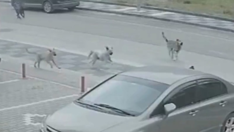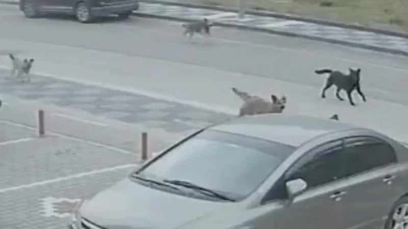 Anne ve çocuklar geriye dönüp kaçmaya başlarken, köpekler de onları kovaladı.
