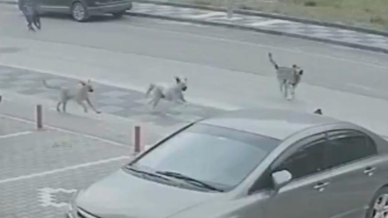 Mamak Kıbrısköy Mahallesi’nde anne ve çocukları, okula giderken başıboş sokak köpekleri tarafından kovalandı.