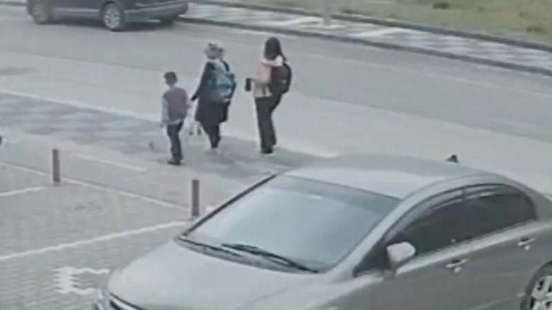 Anne ve çocukları ile köpekler, bir süre sonra kamera kadrajından çıktı.