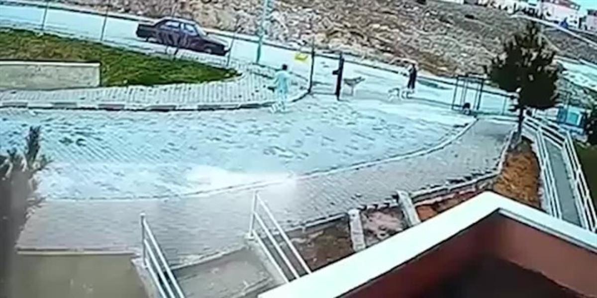Köpeklerin çocuklara saldırma anı, mahalledeki bir sitenin güvenlik kamerasınca kaydedildi.