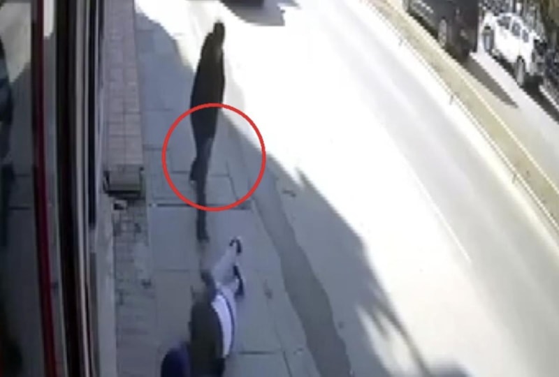 Görüntüde dükkandan çıkıp kaldırımda yürüyen Yakup Polat'a arkadan yaklaşan şüphelinin ateş etmesi ve Polat'ın yere yığıldığı anlar yer aldı.