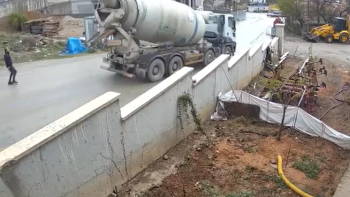 Ankara'nın Gölbaşı ilçesinde sürücüsünün park halinde bırakarak indiği beton mikseri, el freni tutmayınca hareket etti.