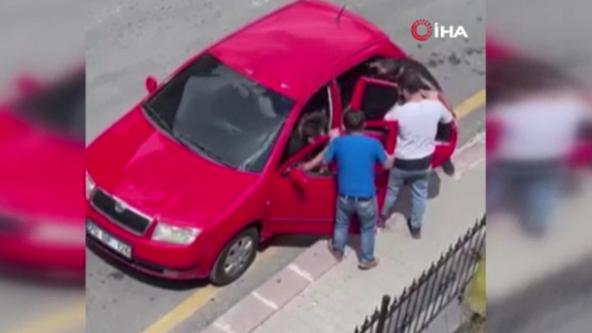 Çevredeki vatandaşlar olayı kayda alırken polis çağıracaklarını da söyleyince, sürücüyü darp eden kişiler olay yerinden hızlıca uzaklaştı.