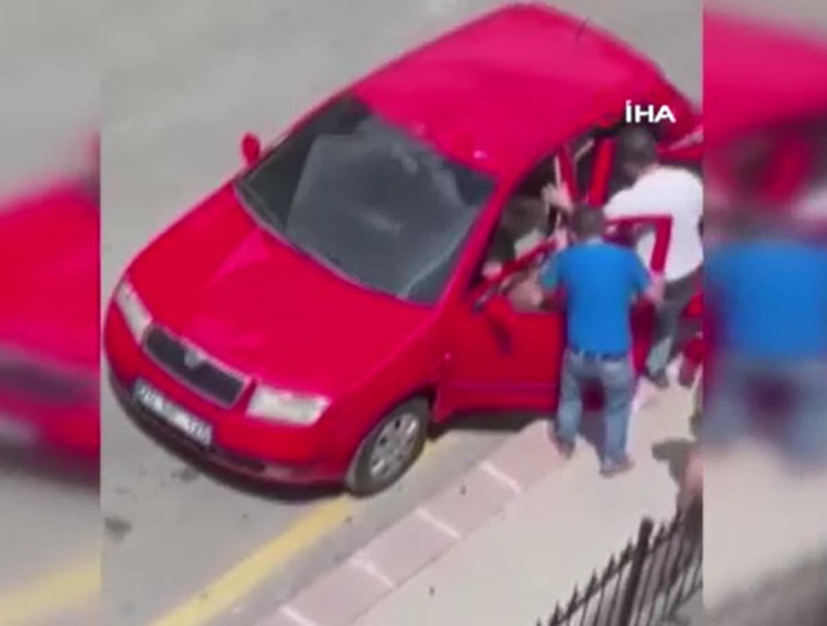 Kimliği bilinmeyen şahıslar önünü kestikleri araç sürücüsünü aracın içerisinde darbetmeye başladı.